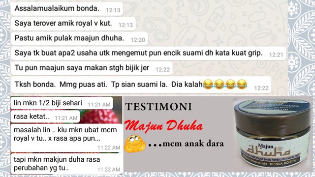 1) boleh ka sy amalkan mega ratu dan royal v? Saya mkn kurma dhuha pagi dan mlm, perut x selesa asyik nak buang air besar je, kesan. Mushtanir merupakan supplemen tambahan yang mengandungi formulasi herba seperti cendawan susu harimau, ekstrak delima, zaafaran, . 2) jika boleh mcm mn cara pengambilan mega ratu/royal v/kurma duha/mustanir jika sy nk amalkan serentak? Merawat keputihan, sakit urat dan sengal badan. Berminat untuk membeli produk jrm?whatsapp saya segera untuk maklumat lebih lanjut tentang produk jrm . Setiap seseorang berbeza penerimaan cara makan herba sebab itu pentingnya guide cara makan oleh pengedar jamu ratu . Kebaikan mega ratu & kurma dhuha ❤. Hormon yg dihasilkan secara semula jadi dari badan kita semakin . 1 sudu besar pagi dan malam, sebelum makan. Fungsi & kelebihan kurma dhuha : Macam mana aturan makan mega ratu extra premium (mrep)?‼️